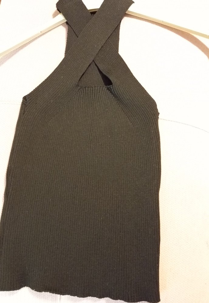 Bu siyah, boyundan çapraz bantlı triko bluz, standart beden, Şık ve günlük kullanıma uygundur. 2 en fazla 3 kez giyilmiştir. Fitilli olduğu için esnektir, görüldüğü gibidir, iade almıyorum.