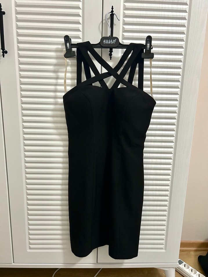 Siyah , vücuda oturan midi boy elbise , arkası fermuarlı çapraz model 2 beden 38 beden
