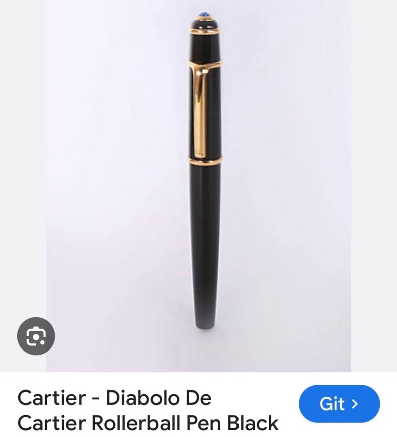 Siyah renkli, altın detaylı Cartier Diabolo rollerball kalem, akıcı yazım sağlar. ✒️