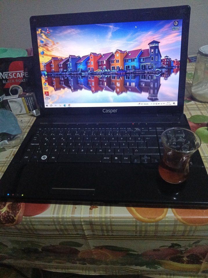 Tam klavyeli ve canlı ekran görüntüsüne sahip siyah Casper laptop 4 Cg ram Windows 10 yüklü batarya sağlam şarj cihazı ile birlikte verilecektir çantası da var filim müzik dinlemek için ders için uygun fiyat son alıcıya şimdiden hayırlı olsun.