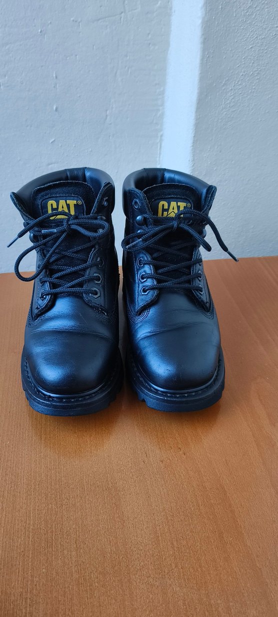 Siyah CAT kadın botları, stiletto topuklu ve tokalı tasarıma sahip, sokak modasına uygun. Günlük kullanıma uygun, desensiz şık görünüm.
