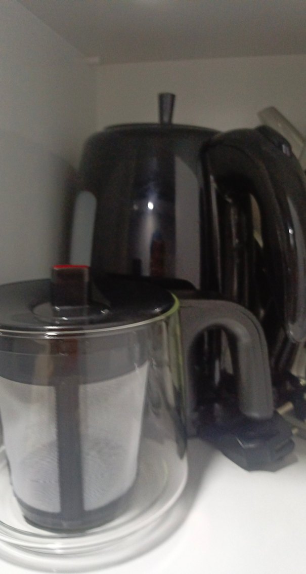 Siyah çay makinesi, cam demliği ve içinde demleme için yerleşik süzgeci bulunur. Şık koyu tasarıma ve rahat tutacağa sahiptir.