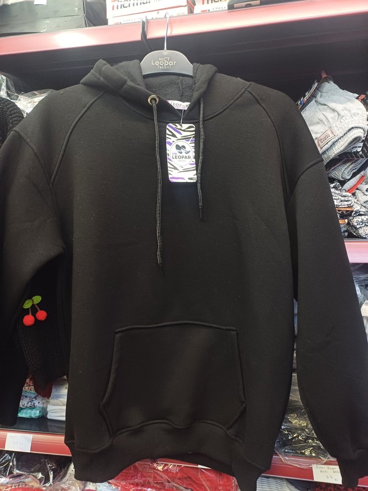 Siyah renkli, kapüşonlu, uzun kollu ve bol kesim kadın sweatshirtü, fermuarlı detaylara sahiptir. Yumuşak ve sıcak kumaştan üretilmiştir.