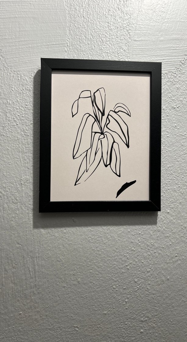 Siyah çerçeveli, minimalist siyah çizgilerle bitki tasviri içeren tablo. Duvar dekorasyonu için sade ve şık bir tasarım sunar. ️30x40