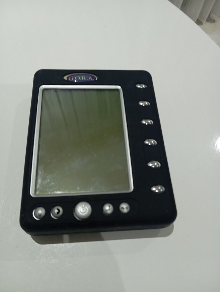 Çoklu kontrol düğmeleri ve net ekranı olan siyah CG.O.R.A. e-kitap okuyucu. Optik karakter tanıma teknolojisi içerir.