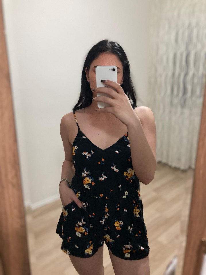 Kadınlar için siyah renkte, çiçek desenli, askılı, V yaka, bol kesim tulum. Ceplidir ve günlük kullanıma uygundur.