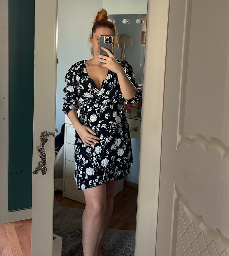Siyah Çiçek Desenli Elbise
