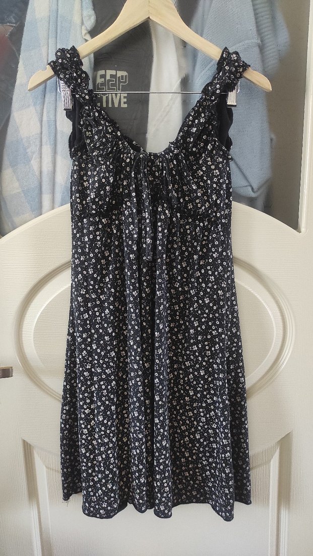 aldığınız her ürün için hediye gönderiyorum. Siyah çiçek desenli, askılı ve volan detaylı midi boy, bol kesim elbise. Yumuşak sentetik kumaştan, günlük kullanım için uygun.