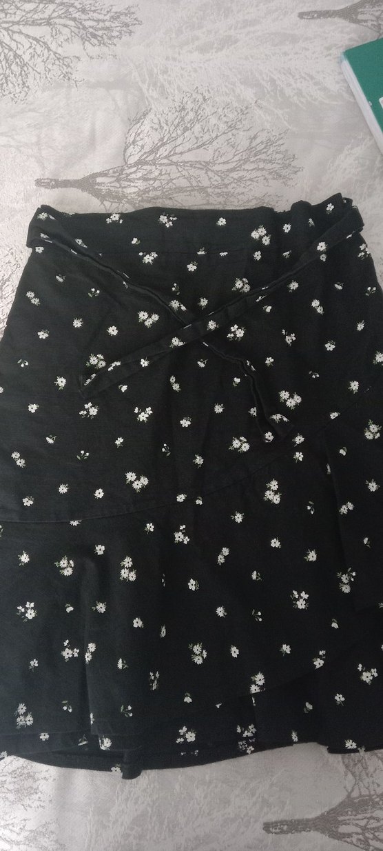 Sentetik kumaştan yapılmış, siyah renkli, çiçek desenli ve fırfırlı bol kesim midi etek. Trendy günlük kullanım için uygundur. çocuk için diyor ama kesinlikle S beden giyene rahat olur uzun biraz