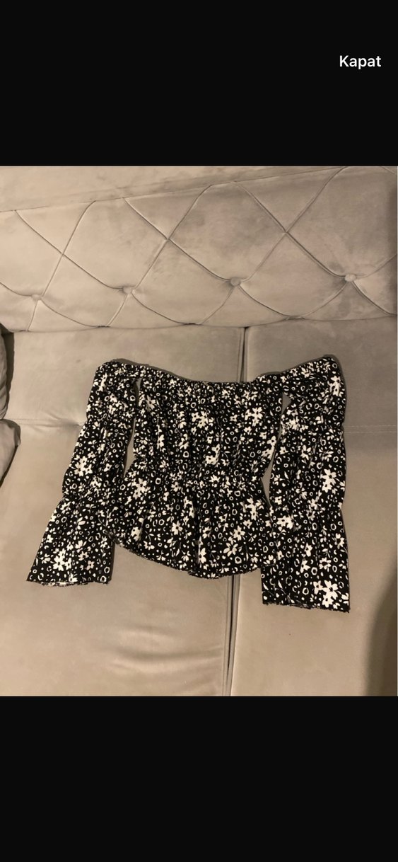 Siyah Çiçek Desenli Mini Bluz
