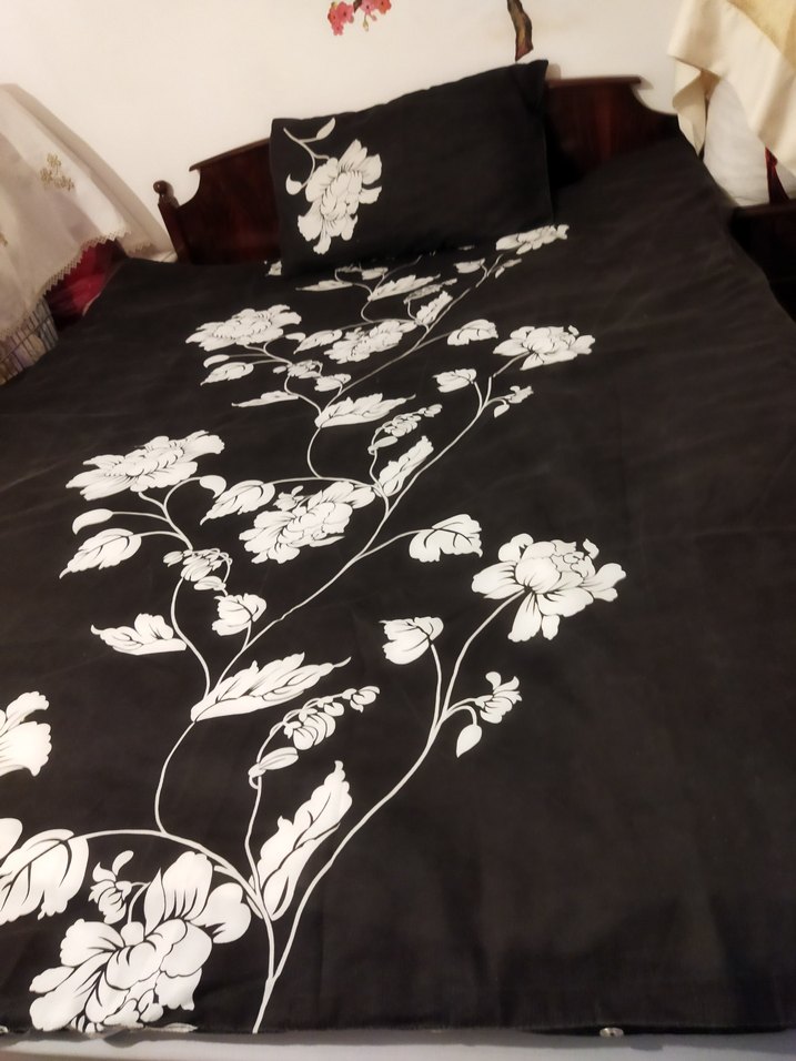 Siyah çiçek desenli nevresim ve 2adet yastik