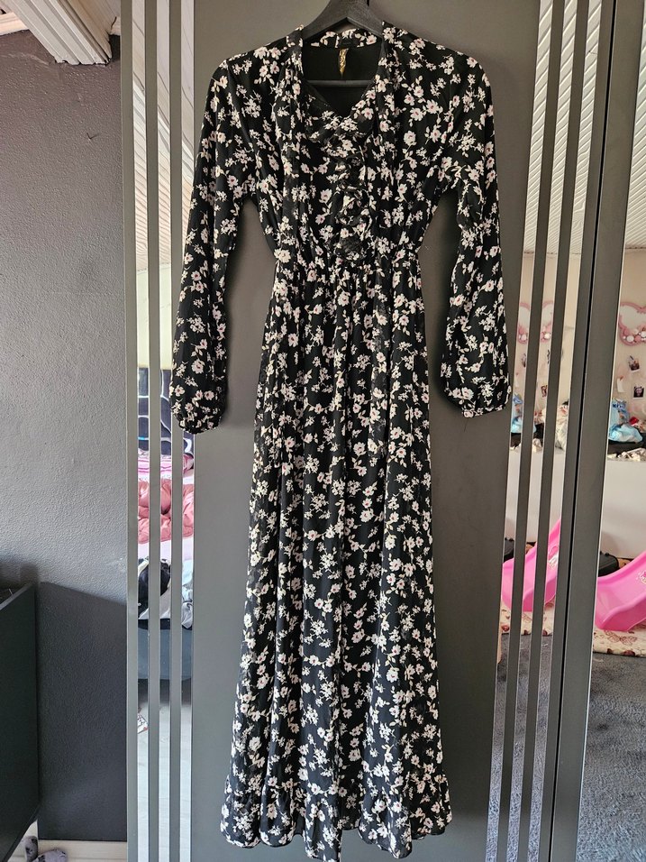 Siyah Çiçek Desenli Uzun Bohem Elbise 38-40 beden uyumlu