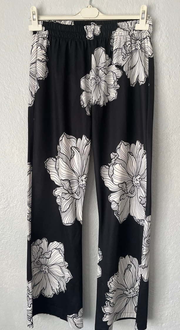 Siyah Çiçek Desenli Uzun Bol Kesim Pantolon