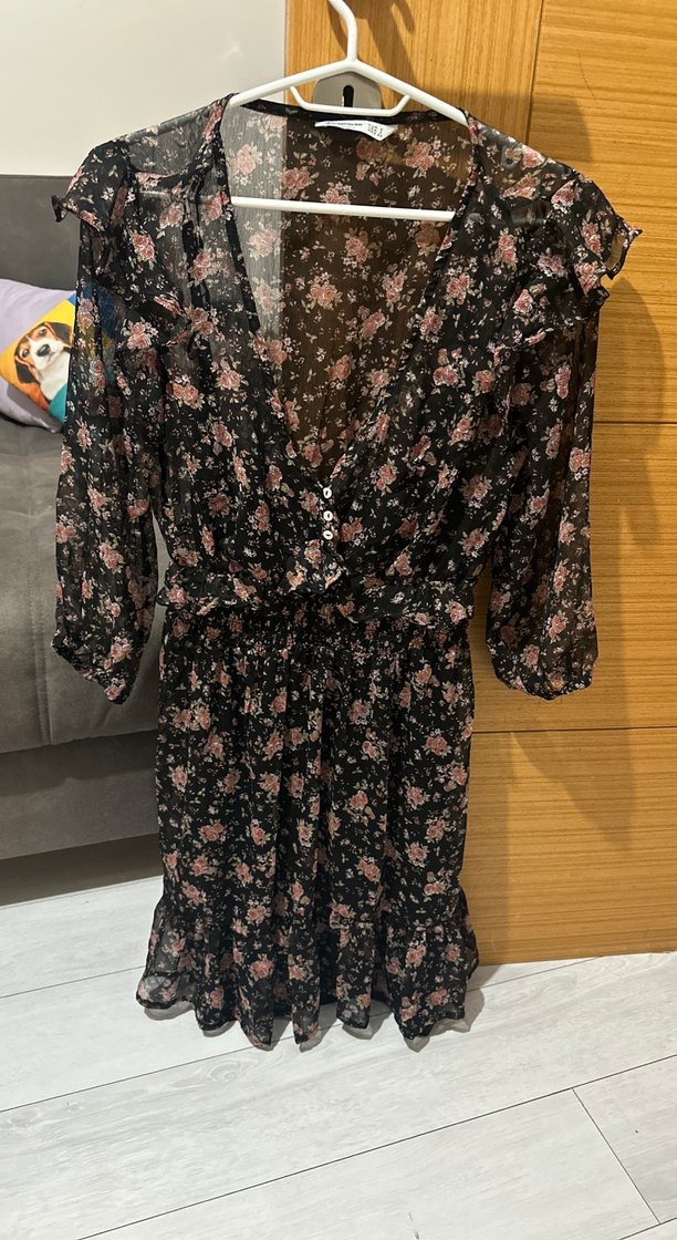 Siyah kısa çiçekli stradivarius elbise. İçinde askılı astarı vardır