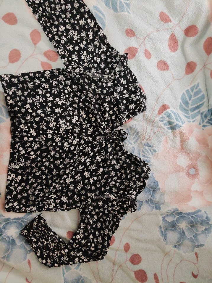 Siyah Çiçekli Fırfırlı Kadın Bluz