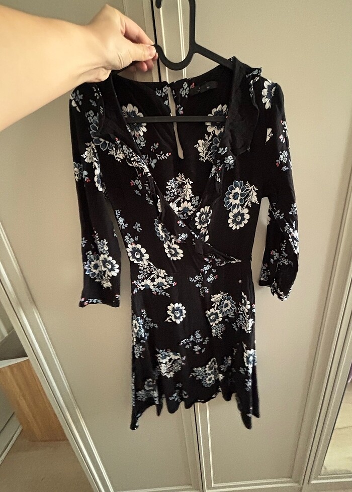Siyah çiçekli mini elbise
