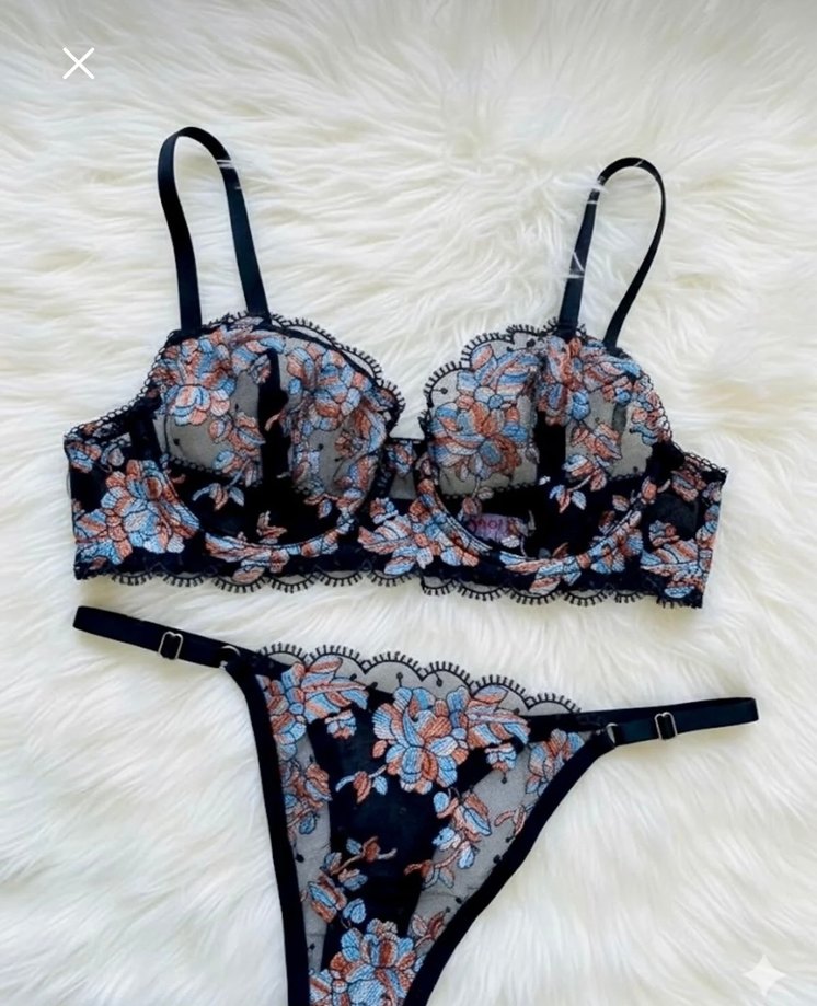 Siyah çiçekli sütyen tanga takım sıfır