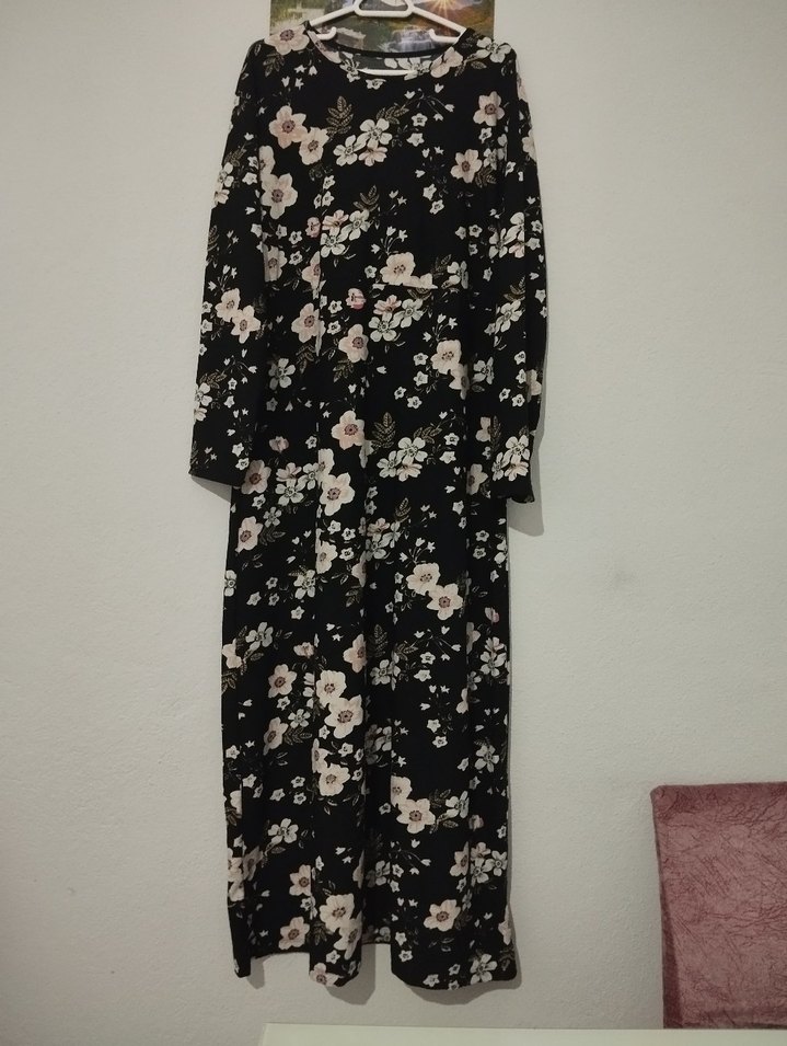 Siyah uzun elbise, bol kesim, iki kol arası 56 sm boyu 130 sm temiz ve sağlam defa yok