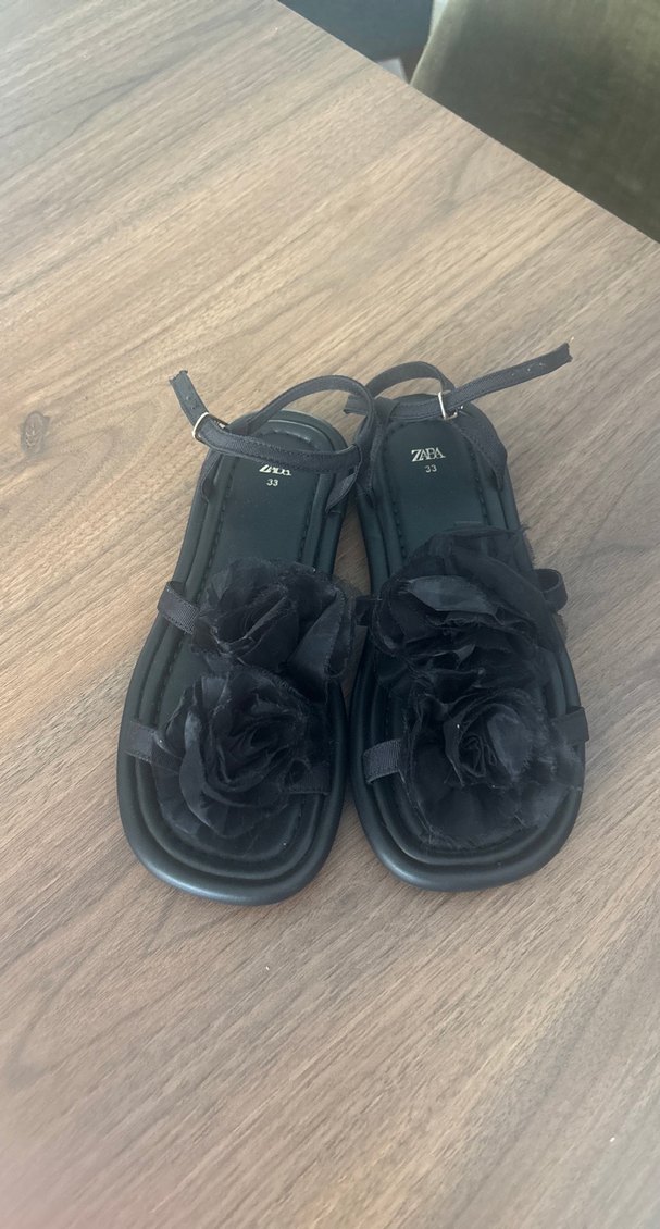 Siyah Çiçekli Zara marka kız çocuk sandalet