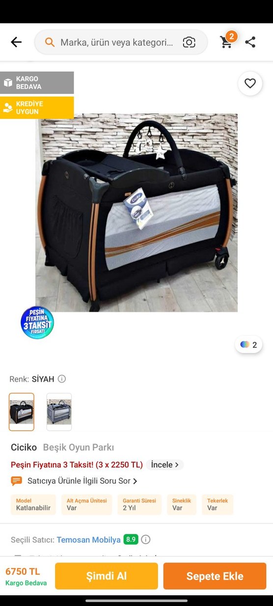 Siyah Ciciko beşik oyun parkı, file yanları ve oyuncak barı ile sağlam yapıya sahiptir. Taşınması için tekerlekleri vardır. ️ sadece köşe kısmınin aparatı çıkıyor iç içine olan oranın yapıştırılması lazım çok az kullanıldı