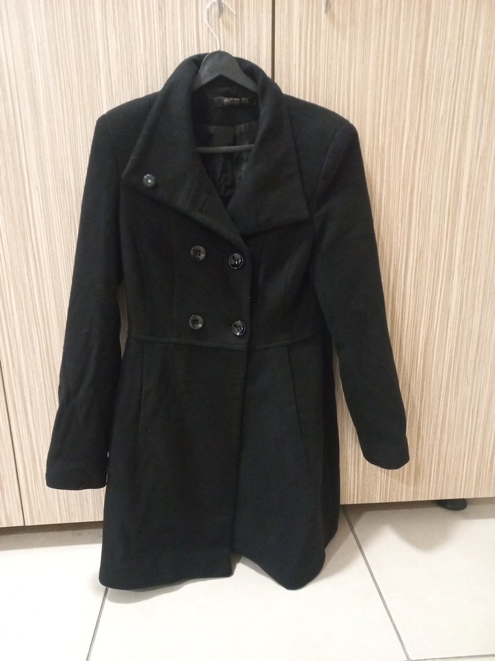 Geniş yakalı, çift düğmeli siyah kaban, uzun kollu ve vücuda oturan kesimlidir. Serin havalar için uygundur az kullanıldı ama aşırı sıcak tutan bi kabandır bele tam oturur vücudu çok güzel gösterir.