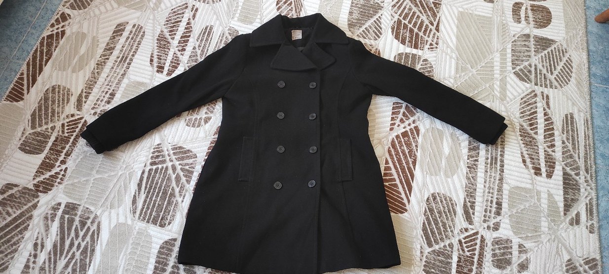 Siyah renkli, çift düğmeli ön tasarıma ve iki cep detayına sahip klasik yakalı kaban. Sıcak ve yapılı bir kesime sahiptir. ölculeri görselde mevcuttur istediğinizi sorabilirsiniz