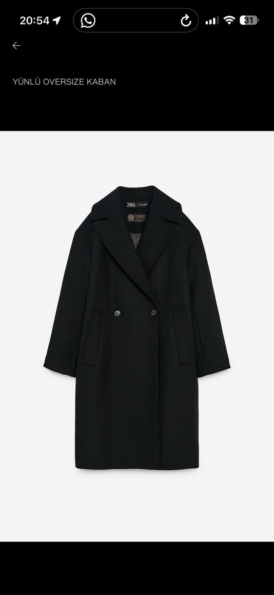 Oversıze siyah yünlü kaban #zara markasına ait