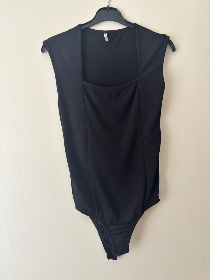 Siyah, kolsuz ve vücuda oturan body. Desen içermeyen şık bir tasarıma sahiptir. Çıtçıtlıdır. S-M uygun