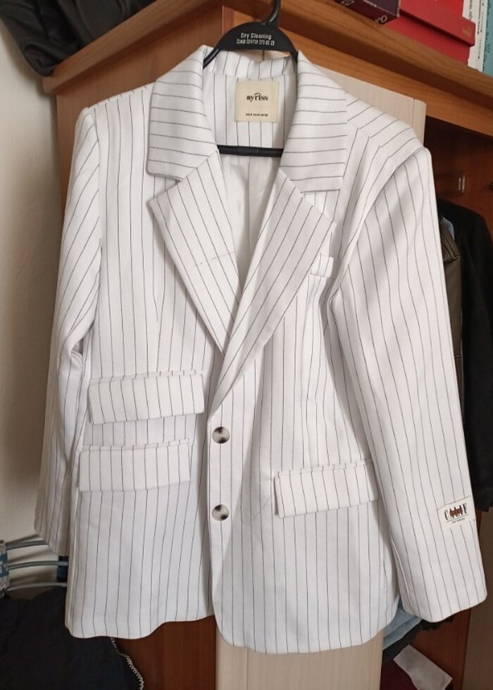Siyah çizgili beyaz blazer ceket