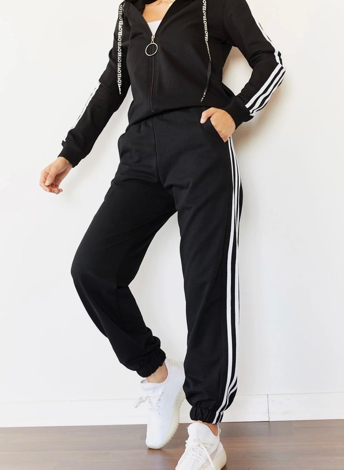 Siyah Çizgili Fermuarlı Kadın Eşofman Takımı
