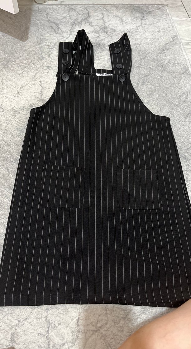 Siyah kumaştan, çizgili ve askısız, mini elbise, rahat ve şık günlük kombinler için ideal.