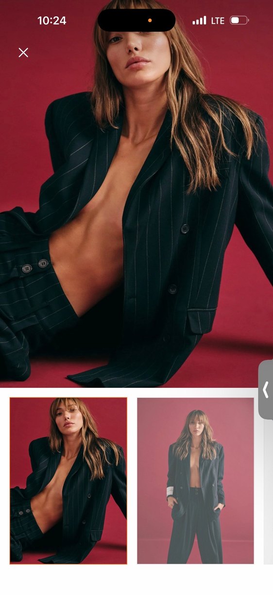 Siyah çizgili, yakalı ve düğmeli kadın blazer. Askılı kollu, kısa kesim, ipeksi kumaştan, cesur ve iş stiline uygun.