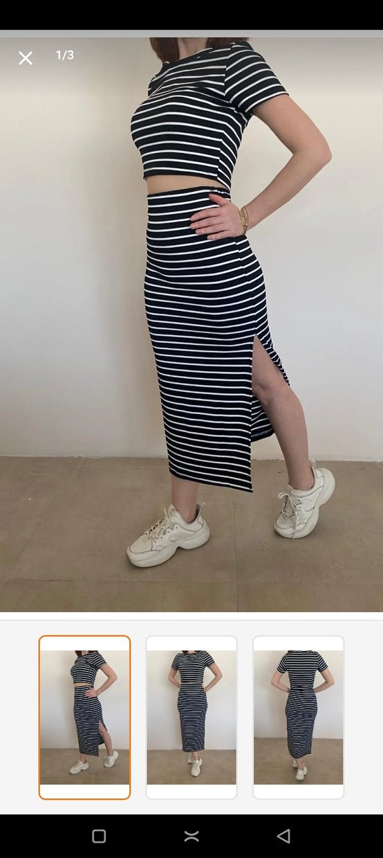 Siyah Çizgili Kısa Kollu Bluz ve etek