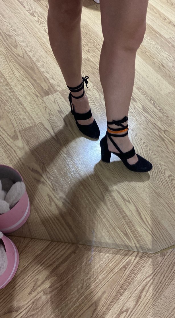 Siyah çizgili platform topuklu ayakkabılar, elastik bantlı ve kauçuk malzemeden. Gotik tarzda, romantik buluşmalar için uygun. Sadece fotolardaki sorunları başka sorun yok