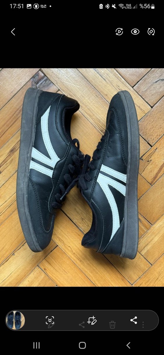 Siyah renkte, çizgili tasarıma sahip kadın spor ayakkabısı. Trendy casual tarz için velcro özelliği bulunur. Spor ve sokak stili için uygundur.