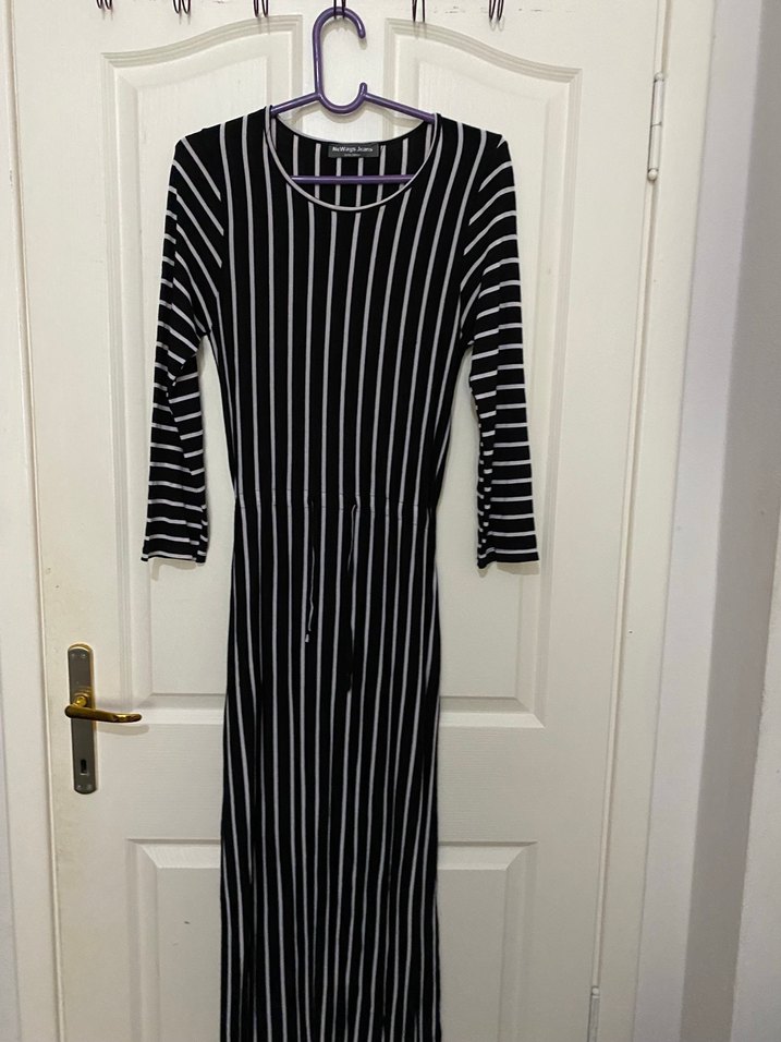 Siyah Çizgili Uzun Kollu Elbise
