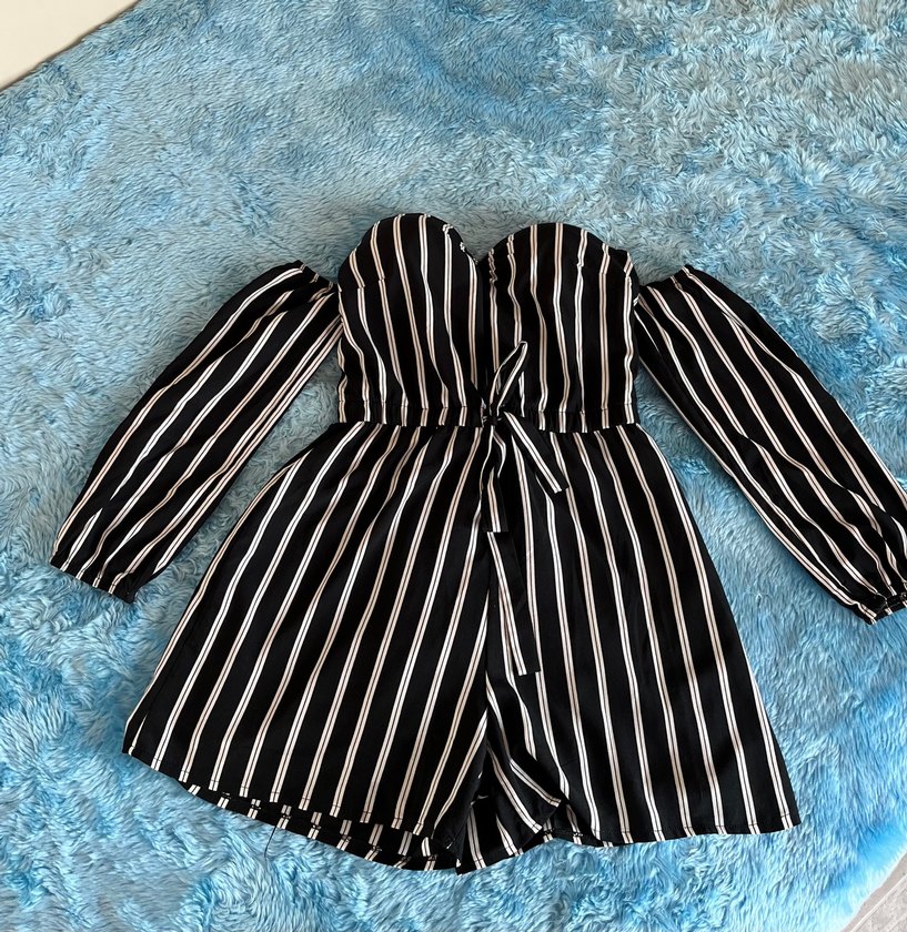 Siyah Çizgili Uzun Kollu Mini Tulum