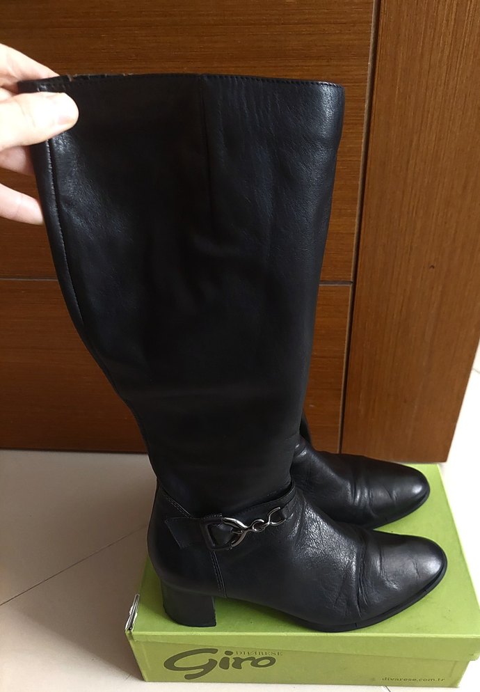 İçi dışı %100 hakiki deri çizme, iç derisi krem rengi, siyah çizme birkaç kez kullanıldı, çok rahattır