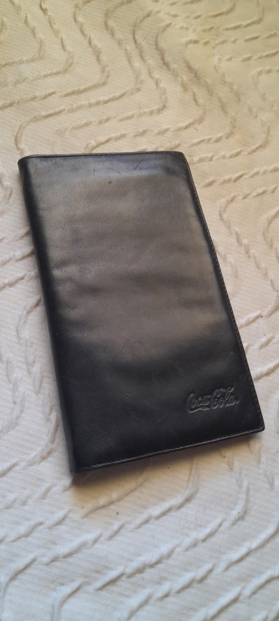 Sade ve siyah renkli, Coca-Cola logosu bulunan klasik tarzda erkek cüzdanı.
