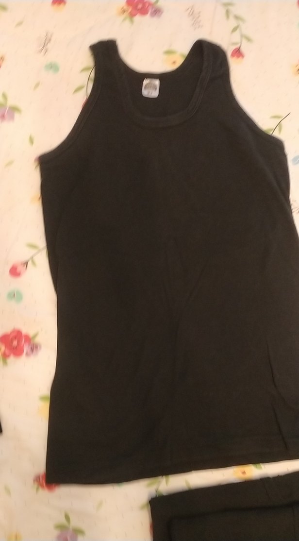 Yumuşak kumaştan yapılmış siyah renkli, kolsuz çocuk atlet. Katmanlama için uygun. üçlü fiyatıdır