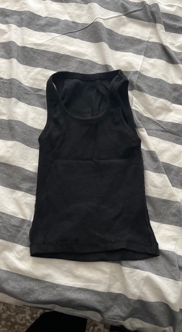 Yumuşak ve rahat kumaştan yapılmış düz siyah çocuk atleti. Katmanlı giyim veya günlük kullanım için uygundur.