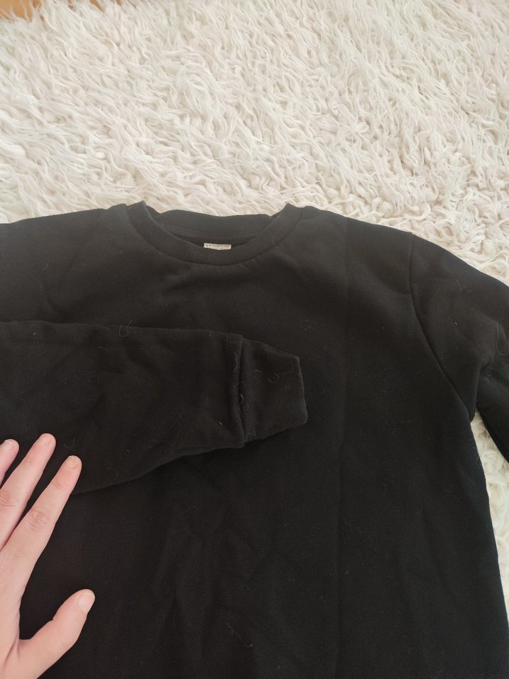 Siyah, bisiklet yaka ve uzun kollu, yumuşak ve sıcak kumaştan yapılmış, normal boyda, sade ve normcore tarzda, günlük kullanıma uygun, rahat kesim sweatshirt.