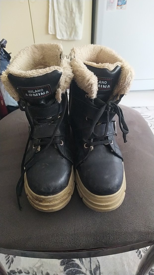 Siyah dolgu topuklu botlar, kauçuk tabanlı ve tokalı detaylıdır. İç kısmı sıcak kürk astarlıdır, gündelik şıklık için uygundur.