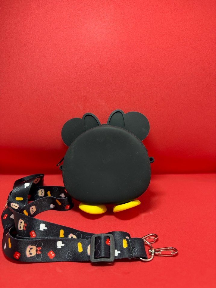 Kayışında baskılı desenler bulunan, tokalı siyah çocuk cüzdanı. Rock punk havası taşıyan tasarım.