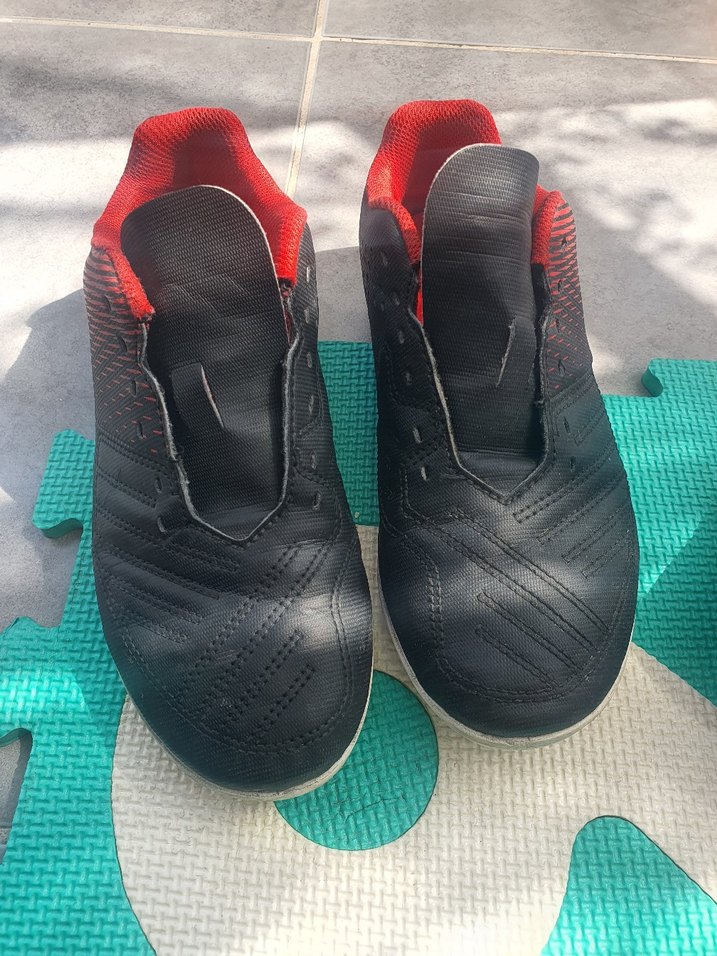 Spor ve sokak stiline uygun, velcro kapamalı siyah erkek futbol ayakkabısı. Kauçuk taban ve rahat kullanım sunar. ⚽ bağcıkları yok