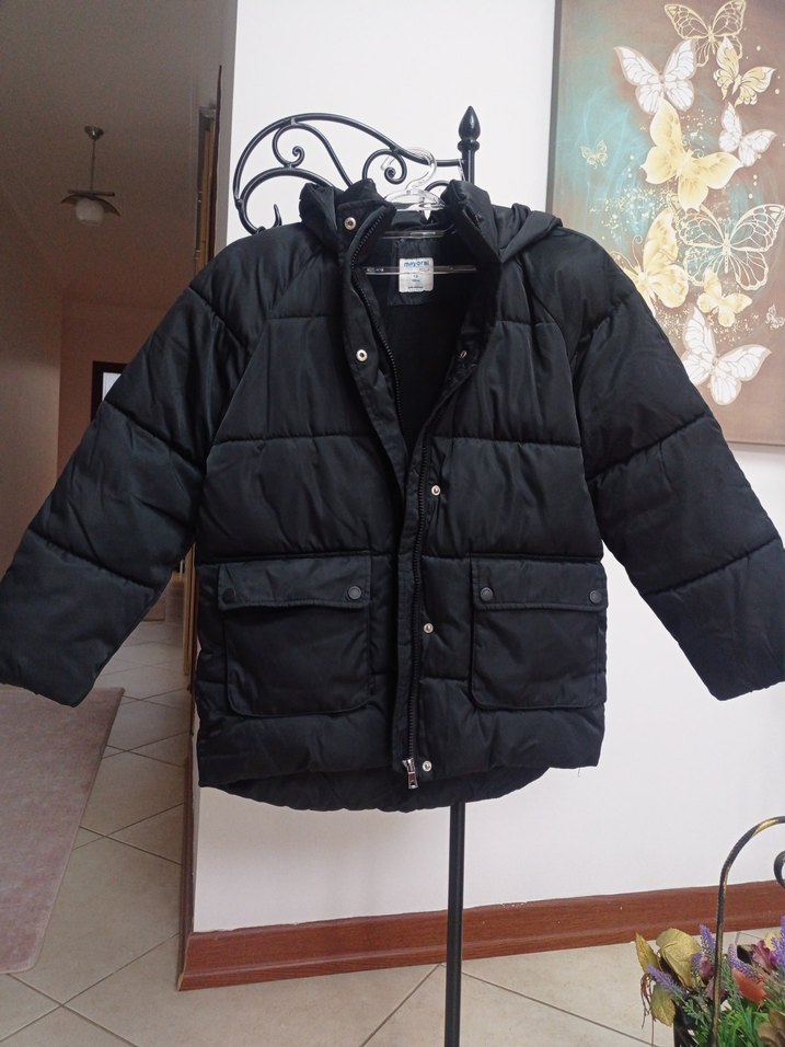 Siyah, düğmeli ve yumuşak, sıcak tutan kumaştan yapılmış çocuk kabanı. Dikişsiz, basic ve streetwear tarzında, cep detaylıdır.