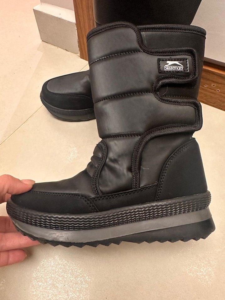Siyah kauçuk malzemeden yapılmış, çocuk kar botu. Günlük kullanıma uygun, rahat ve şık sokak stili için idealdir.