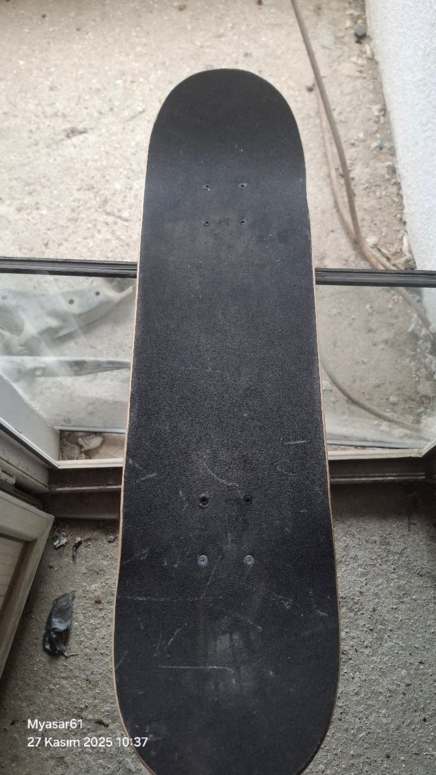 Siyah, kaymayı kolaylaştıran pürüzsüz tutuş yüzeyine sahip çocuk kaykayı.