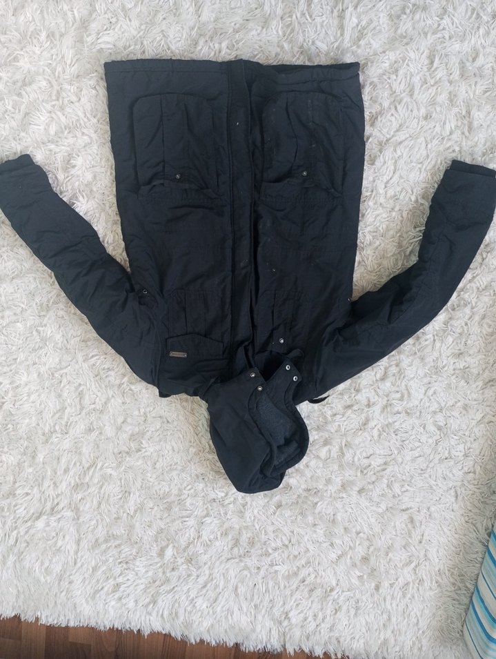 Siyah, uzun, erkek çocuk kışlık ceket. Kürklü detaylı, klasik yaka ve uzun kollu, rahat kesim. Yumuşak ve sıcak kumaştan, dış mekan için uygun. kışlık monttur herhangi bi deformesi yırtığı yok