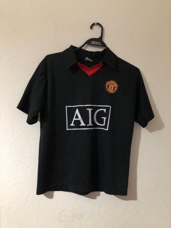Siyah renkli, kısa kollu, düğmeli yakalı erkek forma. AIG baskılı, bol kesim ve spor temalı streetwear tarzında. Toplu alımlarda indirim yapıyorum.